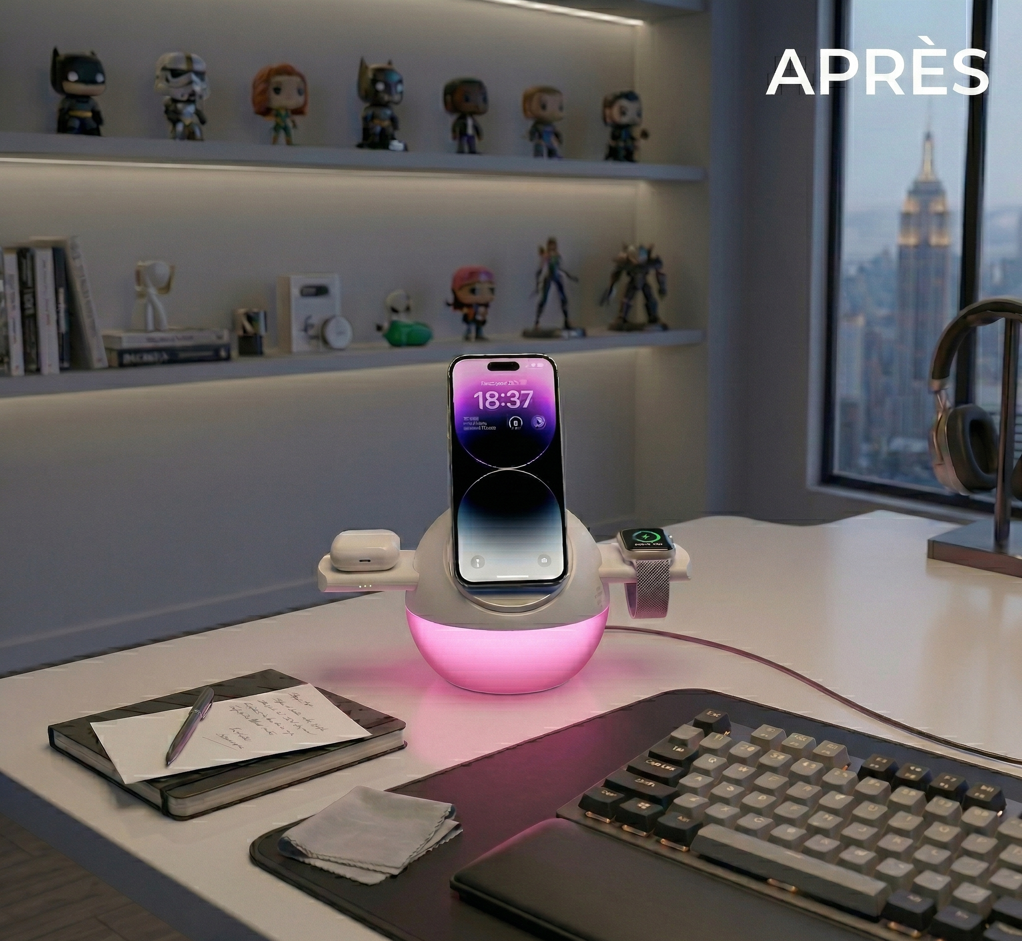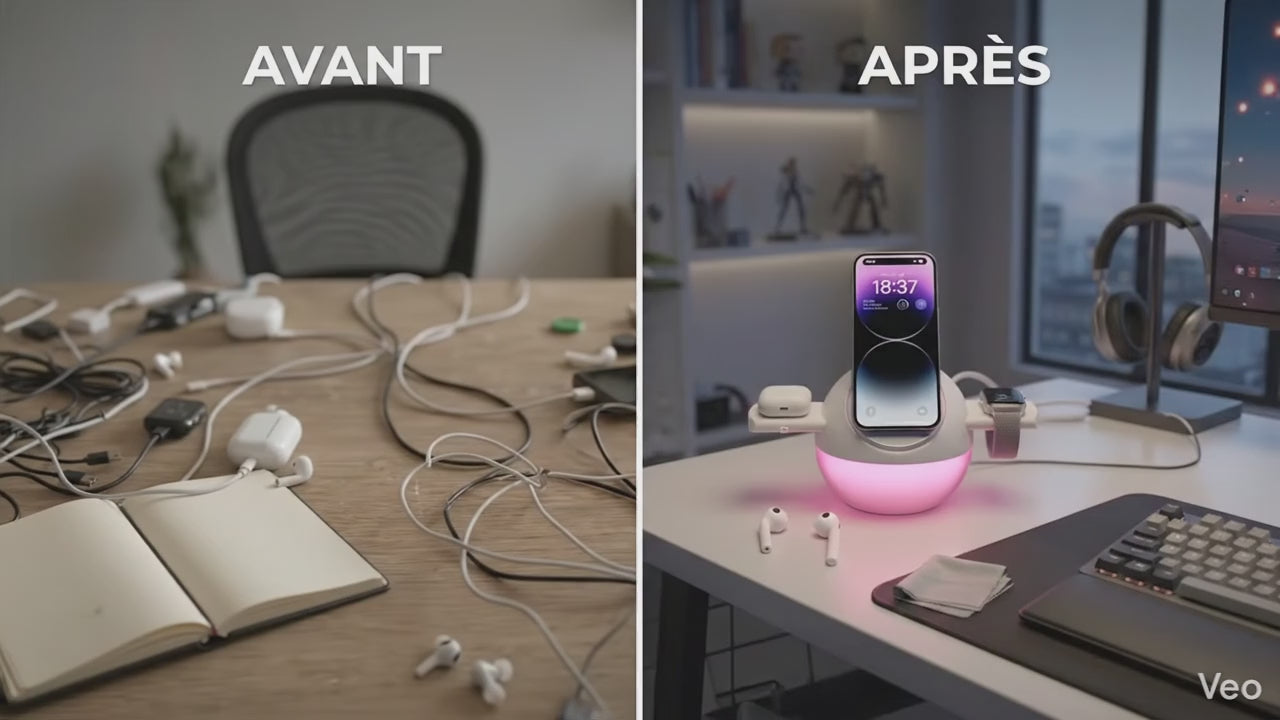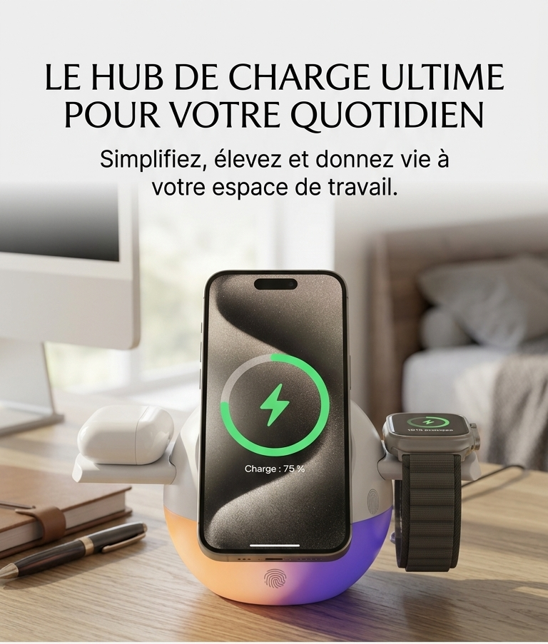 Rechargez jusqu’à 3 appareils simultanément tout en gardant un espace propre, organisé et élégant.